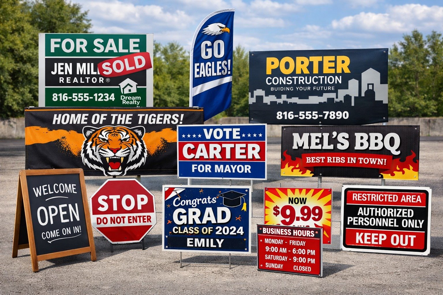 Piercy Sports and Apparel is your trusted partner for premium signage that makes a lasting impact. Whether you’re looking to boost brand visibility, highlight a special event, or create memorable displays, our wide range of customizable signs is designed to meet your unique needs. From bold banners and eye-catching yard signs to professional indoor displays, we provide products that combine durability with striking design, ensuring your brand stands out wherever it’s seen.